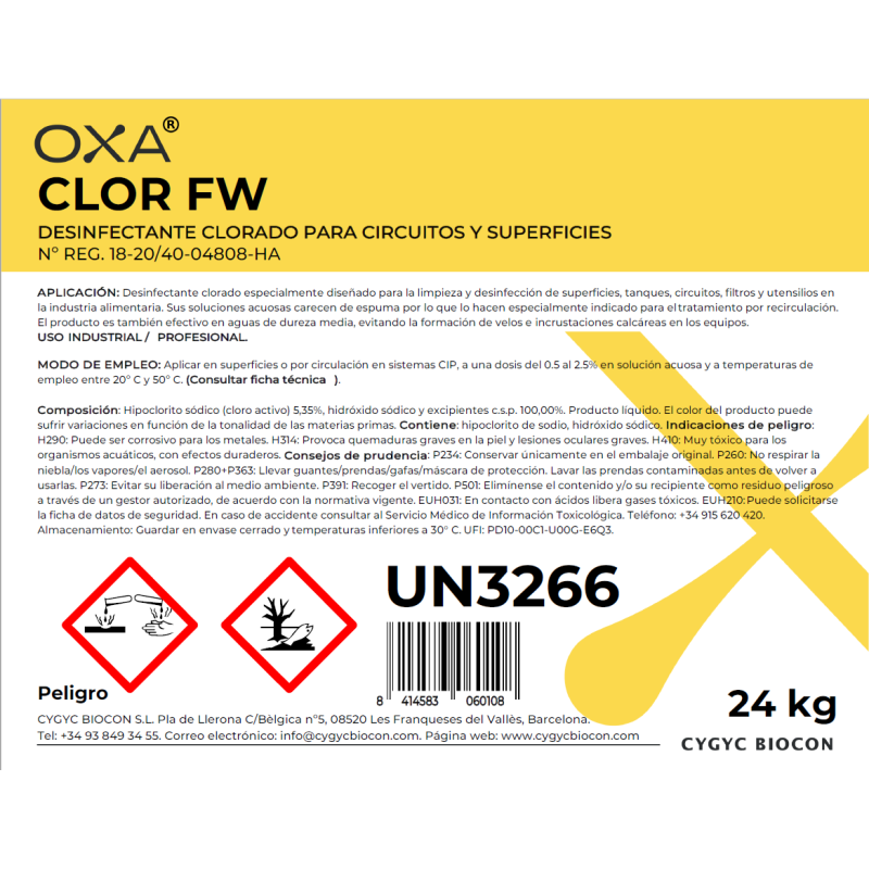 Detergente clorado Oxa-Clor 25, especialmente formulado para la limpieza y desinfección de conducciones y tanques de leche. Su potente acción clorada elimina positivamente residuos orgánicos y microorganismos, garantizando una higiene impecable.. Ideal para mantener las instalaciones limpias, prolongar su vida útil y asegurar la higiene final.